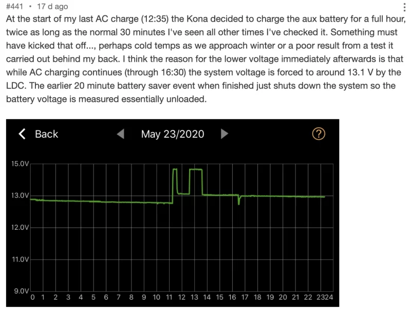 I'd be interested in seeing more BM2 graphs to get an idea of what the changes are, particularly from days when your Kona is not driven, and the one day prior to those when driving to figure out what the triggers are. You seem to be the first owner with both a BM2 and the update.