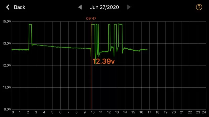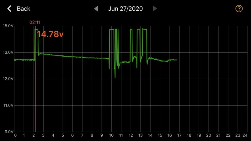 View attachment 8679 View attachment 8680 View attachment 8681 So here are a few more graphs as requested, we just had the car parked for a few weeks and it went into a recharge 'once a day' mode, of around a 25 hour period. Each time it hits 12.73 volts the DC to DC charger steps in and brings the 12 Volt battery back up to 14.78. We have also lost the Aux Battery Saver function after the TSB install, though we never got a warning since the cars was new that this had been activated even though we saw the light on the grill lit.