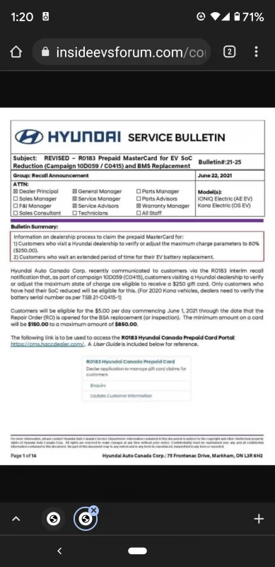Hey folks, does anyone recall Hyundai stating that they were going to reimburse Kona EV customers for an additional $5/day (up to $850) until their battery is swapped out - this o top of the $250 G.C.? I have a recollection of this but can’t find the thread.