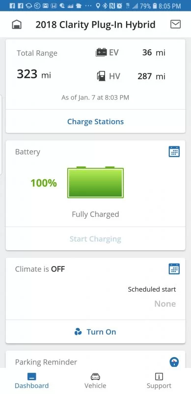 I just bought Honda PHV. Drove about 750.Miles. I Learned with 100% charged battery 37 Miles displayed on the Honda Link app. I start checking every day. Display show 37 miles with 100% charged. I am getting about 28 to 30 mile EV range. I took car to Honda of El Cerrito, According to Honda tech supervisor, This is all about m,y driving habit. Battery is good. There is no problem. My question is this. When car is still on charging station and 100% charged why display show 37 mile EV range. I try both 110V and 220v charging stations. Any advise please. View attachment 3338