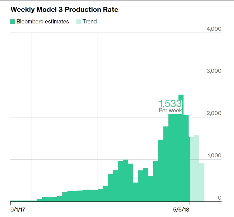 Bloomberg Model 3 tracker shows production crashing below 1000/week