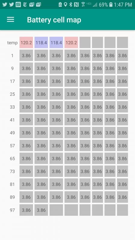I have a different log from 06/21/20 - that one showed more normal temperatures, and cell 40 only had a voltage difference of 0.02V. Hardly enough to notice, really.
