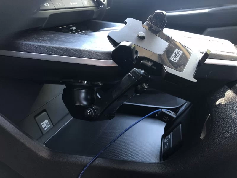 Has anyone found a way they particularly like to mount a cell phone on the dash? Being an iPhone user that prefers Google Maps -- particularly for the offline map feature -- CarPlay doesn't do it for me (not to mention that my aging 5s periodically drops its USB connection, so Bluetooth has been my connection of choice, but I do like to glance peripherally at the screen while navigating since the timing of GM's prompts can lead one to turn one street too early). In our old car we have an iottie windshield mount phone holder, but that doesn't seem to viable in the Clarity. I've simply set the phone in the groove created by the info display and leaned it against the vents, but it tips over occasionally when turning.