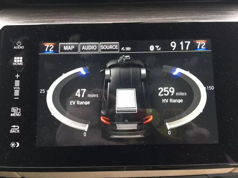 My understanding and observation is that the center, looks like the battery display for the vehicle energy screen on the center display is representative of the true state of charge of the high voltage battery. My observation is that this "battery" representation matches the electric energy gauge on the driver's instrument panel. The circular display to the left on central display's vehicle energy page is a range gauge where the maximum range is 50 mile (non-metric units). Presently, our Clarity has 26 miles left of EV range and the SOC is 69% (by HondaLink). The 69% value is the same as the graphical displays on the instrument panel gauge and the vehicle energy central battery picture on the center display.