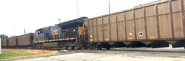 The longest, empty coal car train I've ever seen. Four pulling and one in the last 1/3d.
