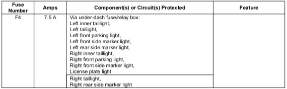Note that F4 is the relevant fuse for the taillights, HOWEVER, it looks like a lot of other things would also be out if this fuse were bad, so unfortunately this is not likely to be your problem. I posted this information mostly for general reference.