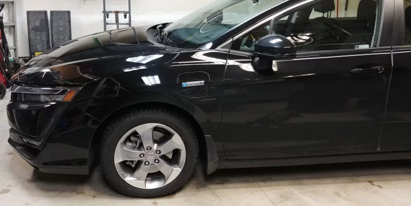 Its my first time posting on the forum, I wanted to thank everyone for posting all the useful information here. It helped me with the purchase and to get a great price as well as helped with the small adventure I've been through post purchase (said adventure did get me some pretty interesting photos of the underbody systems with all the covers removed that I'll share in another thread). I'm a long time DIY car person and I always use a second set of used OEM rims for winter tires. It took me a bit of research but the HR-V wheels (17x7.5 with identical center bore and a 55mm offest) turned out to be a nice fit for the Clarity in my opinion. Specifically they're 2018 wheels with Nokian Hakapellitta R3's at 215/55 R17. The slight offset brings the tires in a bit and I think that should help keep the slush from spraying out onto the sides of the body. The wheels were about 300$ shipped from a junkyard and the Haka's were about 800 installed with a road hazard warranty if anyone is interested.