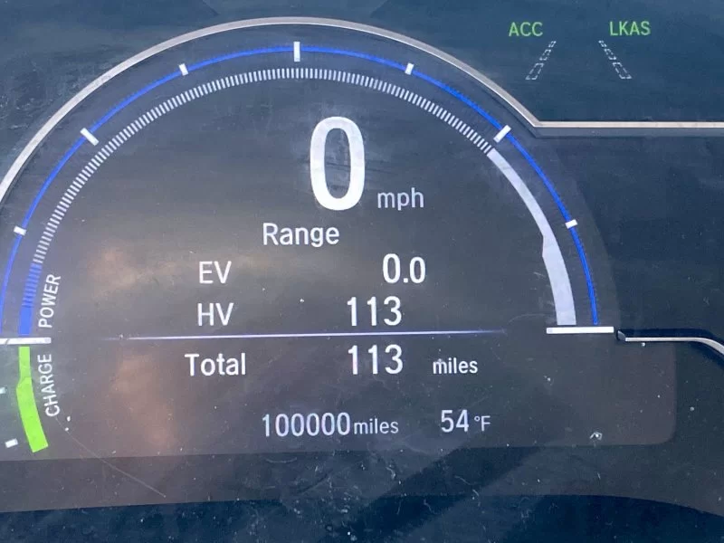 Congrats on the 100K miles. You're on the other side of the spectrum of most owners. I suspect Honda expected people to drive in EV mode for 25-30% of the miles in formulating the warranty. I'm in EV mode for about 80% of total miles. I don't think the battery will last 100K in my way of usage but I'm hoping my babying of the battery will extend the life somewhat (keeping battery between 40-75% SOC most of the time, only charge between 55-75 degrees F, 50% SOC if idle for more than a couple of days, using HV mode regularly to maintain health of ICE and battery, cell balance about once a month, etc). I know most people can't do what I'm doing (I work from home and run several short errands during the day so I can charge between each). Bought car in Dec 2017 and have about 20K miles. GOM is still showing 70 miles when I charge fully.probably 5-10% is EV