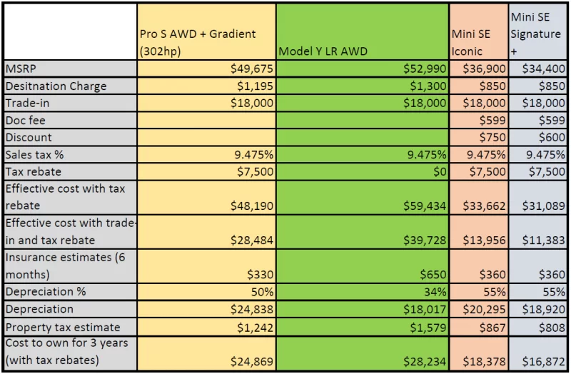 I am just at the stage that I still need to transport my kids and share the new (2nd) car with my wife occasionally. Hence I value if a car can be appreciated by more people in the family. I know I will be paying more for the Tesla M3 SR+ (given my rough spreadsheet estimates) but feel like it’s worth the extra money and the sacrifices (in some aspects) aren’t that great, compared to the SE. I still hope to own a version of mini someday, just not now.