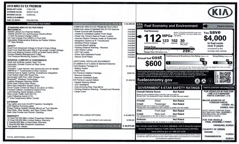 FYI. We got a Niro EV EX trim from Wagner Kia in Shrewsbury MA for $37,000 in early July. That's several thousand under MSRP ($40,770) since it came with a heat pump and battery heater.