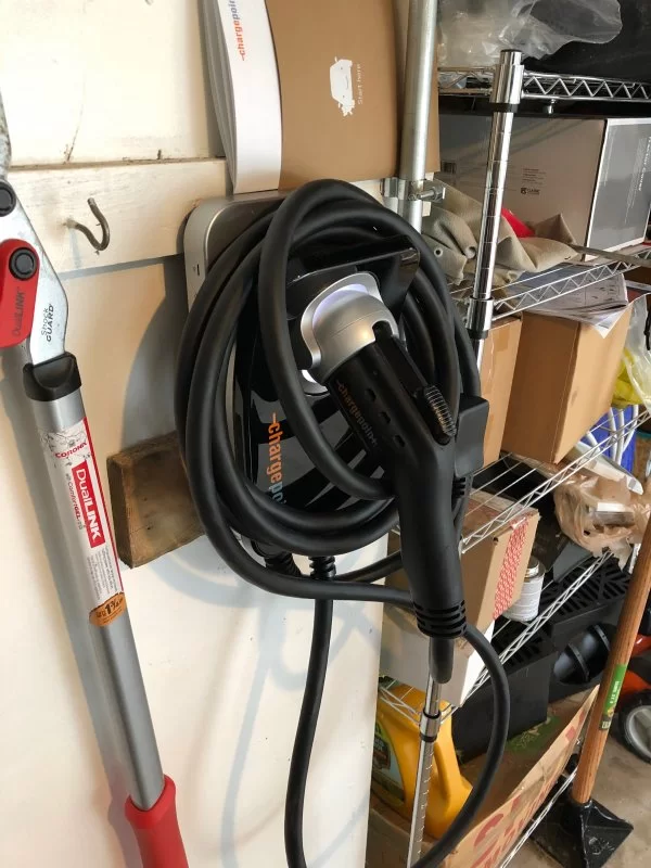 Finally, while you can save a little at the margin to go for a hard-wired charger, the Siemens plug-in comes with a slide-off mounting rail that means you can just take this whole unit with you in the trunk on a long trip if you want. Or, if you decide to move somewhere else, just unplug this one and move it to your new home instead (protect your investment by taking it with you instead of leaving it as an attached fixture). Or, if you have a lake house or something like that, you can buy an extra mounting rail and take the charger there. Costco recently had this one on sale for a final price under $400, and other retailers put these on sale from time to time too. (Or, if you qualify as a veteran, you can take 10% off the price at the register at Lowes or HD.)