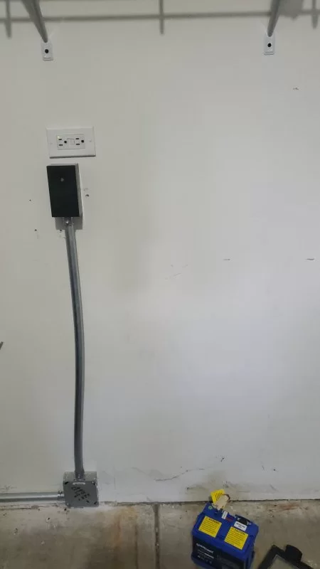 One option I have is to open the square box at the bottom and run the whip conduit to the chargepoint. All I will have to do is cut the wires that go to the receptacle and then use connectors to connect to the new conduit.