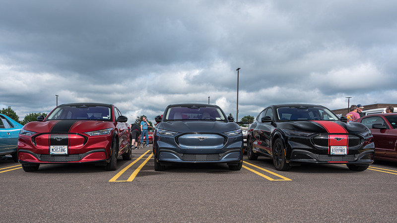 Friends of mine brought their His & Her's Mach-E's to my local Cars & Coffee held weekly at the Wegmans on Rt. 31 in Clay, NY. They have done a little customization to the looks like most Mustang owners do.