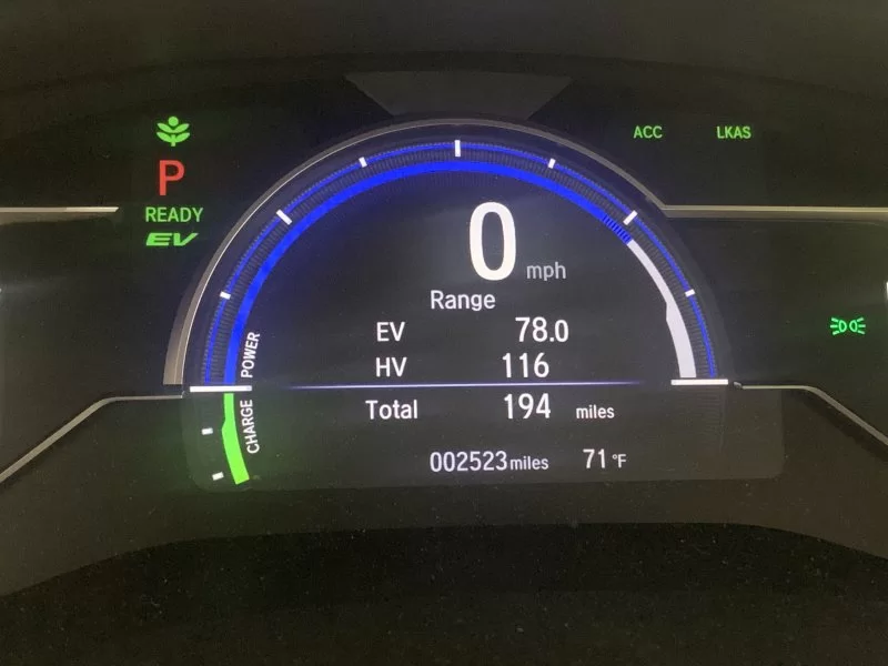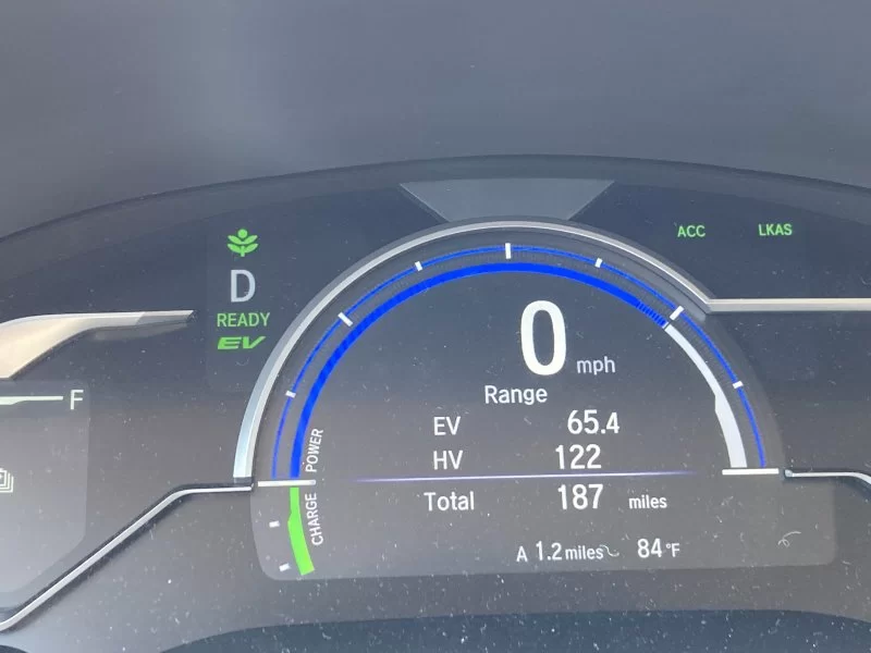 On a recent trip back from a hike, there was about 9 miles of downhill driving, and to my surprise, not only did that charge the Clarity beyond the supposed 47 miles of EV range, it went up to 65.4 miles!