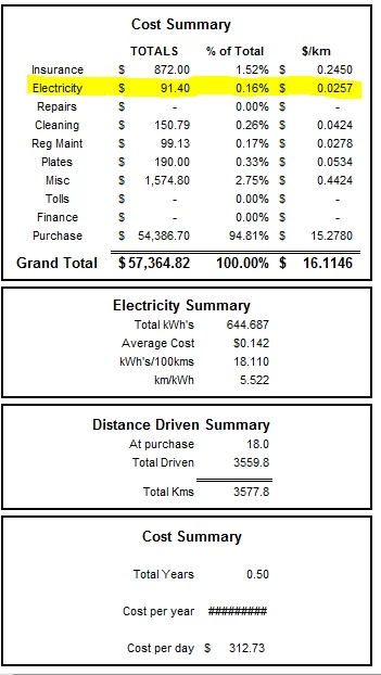 Like my TM3, the insurance will ultimately become the largest operating expense on a per km basis.