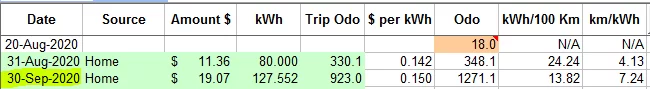 My first month of data for the Kona is somewhat abridged as we took delivery on 20 Aug 2020 and since the dealership didn't fill up the battery, we had to do that at home.