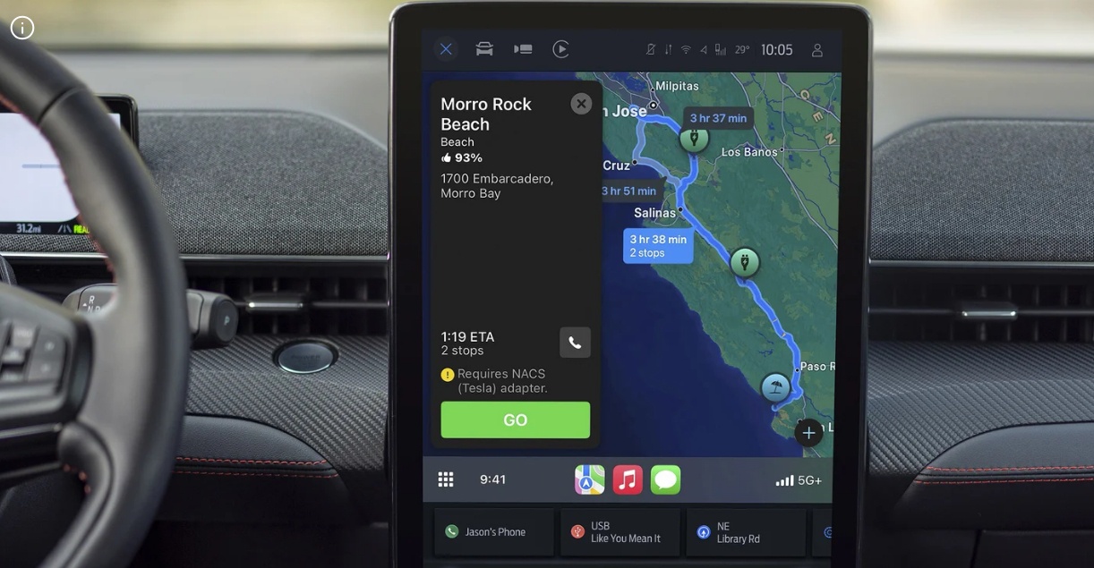 "When a route is started that includes Tesla Superchargers, drivers may see a warning that the route requires a Fast Charging Adapter (NACS) – drivers should make sure to have it with them to use. Battery preconditioning when enroute to a charger is not available for Apple Maps EV Routing."