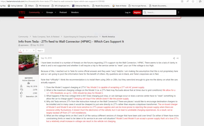277V is only 15% more pushy, than 240 by my math (240 X 1.15 = 277) might work great or maybe it will just trip some overvoltage sensor and stop the attempted charge. I just hope it doesn't let the smoke out of those magic smoke storage boxes.