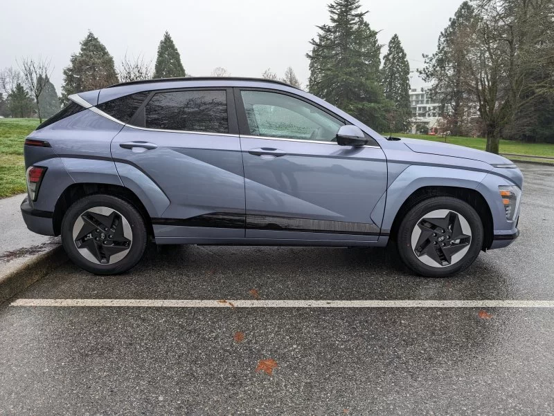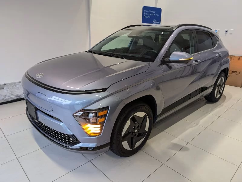 I have some brief comments (mini-review) for my first full day with my Kona Electric Ultimate. My first commute was lots of fun. So many cameras when turning and parking. My old Kona Electric from 2019 didn't have all these features. I no longer have to plug in my phone to get the map feature (Android Auto) working. The HUD (I love HUDs) is improved and no longer has that cheap looking extra glass piece for projection; it now projects directly on the window. The driver digital display covers more of the front dash with no more analogue displays. The driver dash display is large but welcomed. There are still physical knobs to play with - I appreciate that. If I wanted all digital, I would have gone with a Tesla. I like the new gear changer by the steering wheel. And now there are 4 levels of regen. Level 4, I'm told, is similar to how a Tesla works. I don't know because I haven't actually been in a Tesla recently for a long period of time. I appreciate the larger trunk size and more space for the rear passengers. The exterior looks wicked, in a good way.