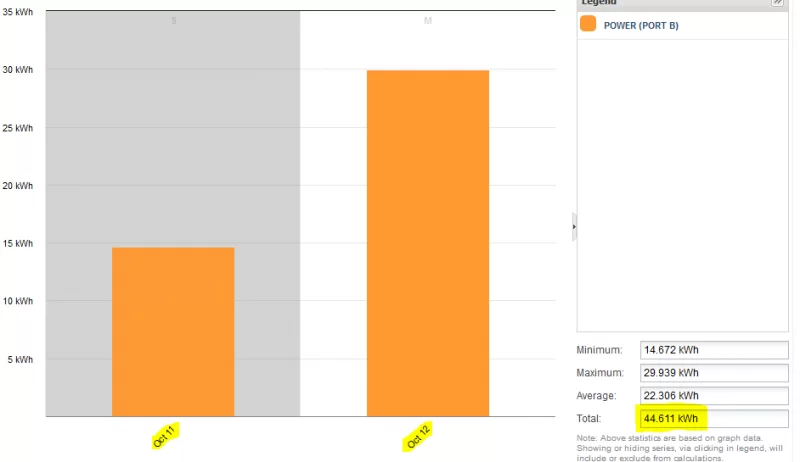 Based on the above data, I estimate the energy consumption was (.154 x 259.5) = 39.96 kWh.