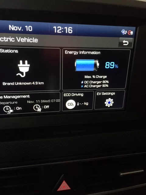 We departed after sunset with 89% SOC (my wife did some driving around town the previous day, thus only 89% versus 90% showing):