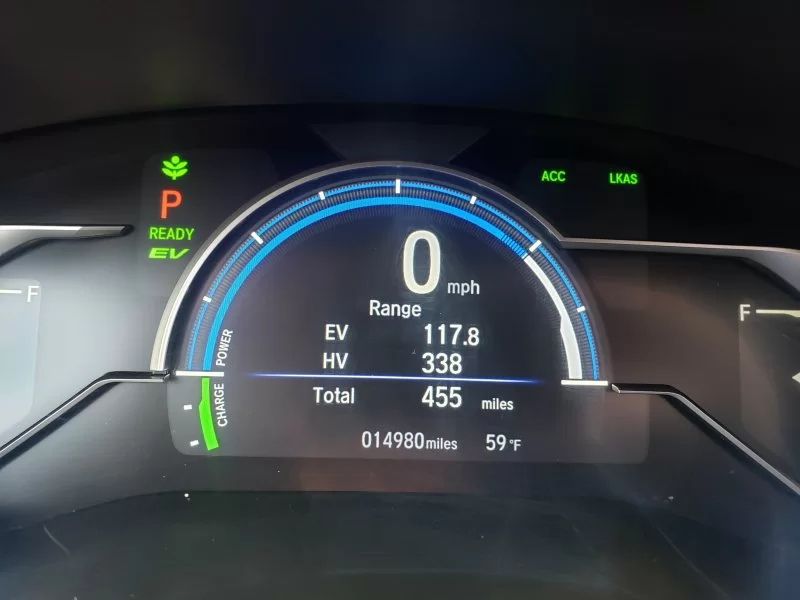 By the way, my normal commute day is 24 miles of ~75 MPH freeway and 15 miles of surface streets, and I see anywhere from 42 to 47 miles of EV range (both actual when I go farther and extrapolating from the miles remaining when I don't run out), mostly depending on how much traffic slowed me down on the freeway