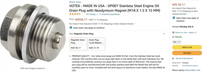 I'm very wary of the machined aluminium plugs on eBay because the magnet is likely only glued in. OEM plugs tend to be made of mild steel with a crimped-in magnet so it's mechanically secured.