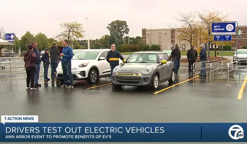 Everyone in the Detroit area who tuned into Channel 7 News tonight got to see my MINI Cooper SE at today's rainy Drive Electric Week gathering of EVs in Ann Arbor.