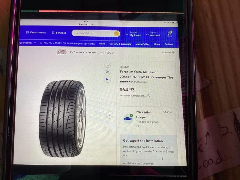 I have the Goodyear Eagle F1 tires at a bit over 25K miles, but I need to replace them because I hit a huge pothole at 70mph and have a bubble on the sidewall now. I'd like to replace them with the same, but my nearest MINI dealer is 3 hours away. The tires seem hard to find, but Walmart seems to have them. Do these seem like the right ones? Other than that, I'm thinking maybe the Firestone Indy 500, which they have at Costco and are cheaper and maybe more convenient since it's Costco. Costco also has the Michelin Pilot Sport All Season 4, but I live in Florida and have been doing fine on the summer tires.