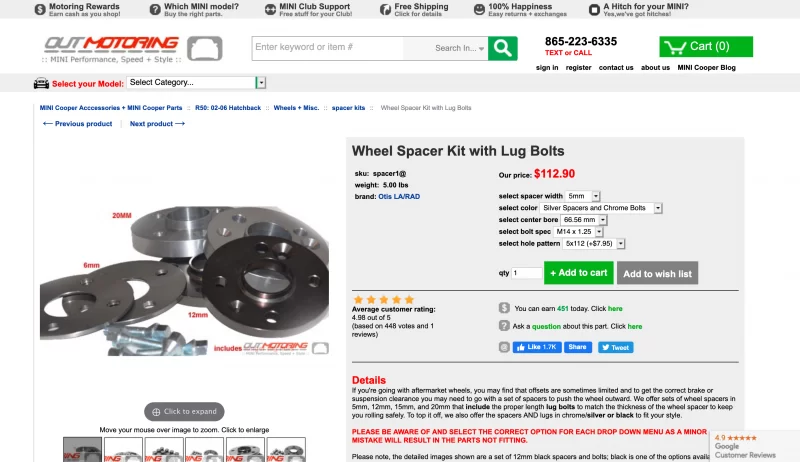 I thought the 1.5 is the length of the bolts, which must be .25 inches longer than stock to account for the thickness of the spacer. Am I mistaken?Be aware that for the MINI, the thread size is M14 x 1.25. The ones on amazon are 14 x 1.5.