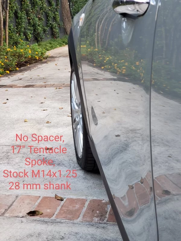I’ve put all the specs I learned/compiled about the stock wheels, hubs, and bolts, below. Thanks to @idrw’s teaching me about lug bolts, I picked the correctly sized threads and shanks on the replacements to work with the new spacers: 45mm (43mm would have been exactly right, 15mm larger than the stock 28mm, but 45mm worked just fine).